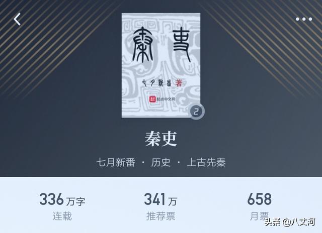 这本历史小说从11年5月连载至今,449万字,写了八年多,断更无数次,更新很慢,或者说是周更,月更,但这并不影响它成绩优异,在整个网络文学历史小说分类中名列前茅,去年18年5月更是在连载八年后获得了起点月票榜冠军并打破纪录!