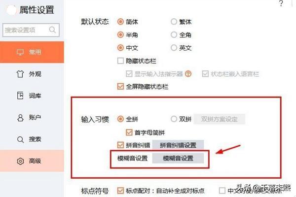 2、看到输入习惯这一栏,其他的大家可以根据需要选择,找到模糊音设置。